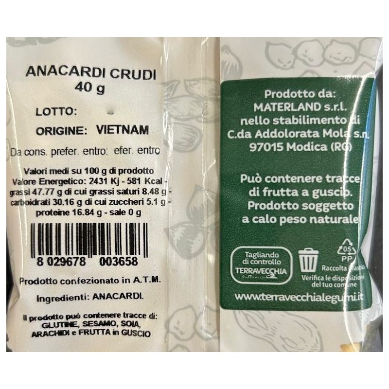 Nuovo ANACARDI NON SALATI GR.150 T.V 2,79 € Prezzo Aggiungi al Carrello Aggiungi Prodotto ai preferiti