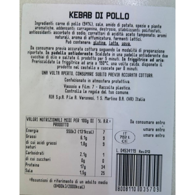 Nuovo KEBAB FETTE TACC AMADORI GR280 3,99 € Prezzo Aggiungi al Carrello Aggiungi Prodotto ai preferiti