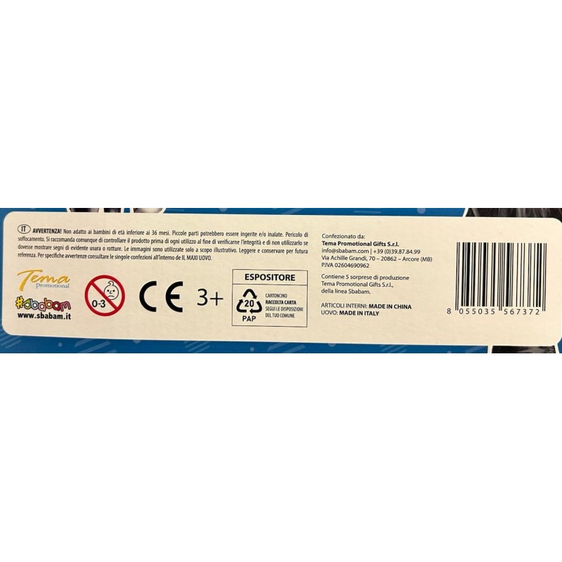 Nuovo (SP) MAXI UOVO B/BINA SBABAM 2026 9,99 € Prezzo Aggiungi al Carrello Aggiungi Prodotto ai preferiti